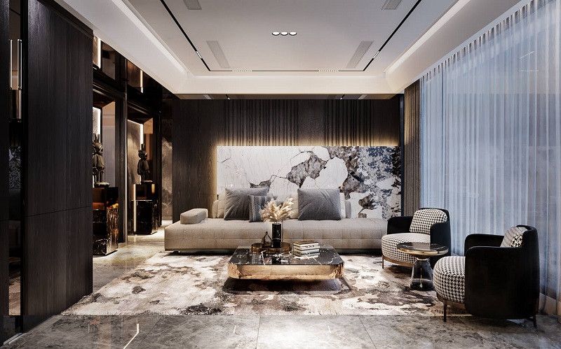 Phong cách thiết kế Luxury thường sử dụng chất liệu và đồ nội thất đặc biệt như gỗ tự nhiên quý hiếm, kim loại được mạ vàng, đá quý, pha lê… Chỉ thông qua việc sử dụng những vật liệu này mới có thể tạo nên sự tinh tế và sang trọng tuyệt đối của phong cách này.