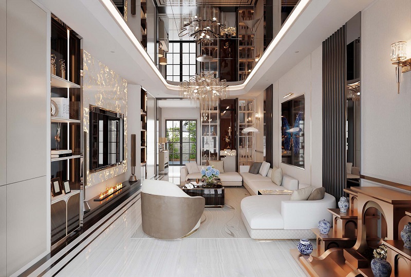Phong cách thiết kế tân cổ điển mang đến sự hòa quyện giữa vẻ đẹp cổ điển và hiện đại, tạo ra không gian sống xa hoa, sang trọng và đẳng cấp như những căn phòng hoàng gia. Phong cách này chú trọng đến các chi tiết trang trí phức tạp, với những đường cong mềm mại và sự kết hợp tinh tế của phào chỉ trên tường và trần nhà. Tổng thể không gian được bố trí đối xứng, tạo nên cấu trúc thẩm mỹ hoàn hảo.